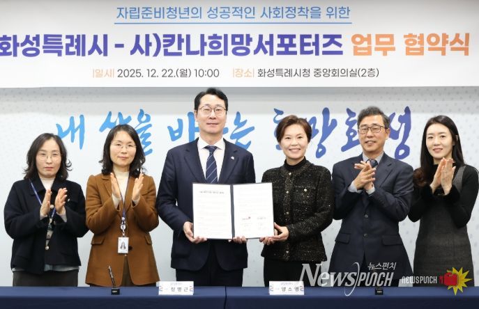 뉴스펀치 김길룡 기자 | 화성특례시는 22일 사단법인 칸나희망서포터즈와 ‘자립준비청년의 성공적인 사회 정착을 돕기 위한 법률 지원 업무 협약’을 체결했다.