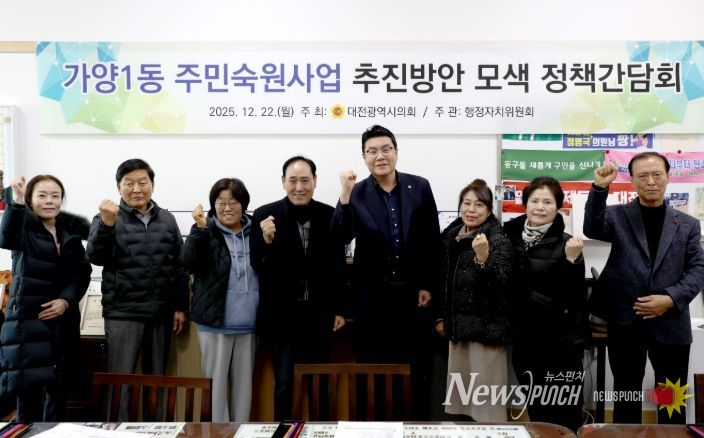뉴스펀치 김길룡 기자 | 대전시의회 행정자치위원회는 정명국 의원(국민의힘, 동구 3) 주재로, 22일 행정자치위원장실에서 가양1동 주민숙원사업 추진방안 모색을 위한 정책간담회를 개최했다.