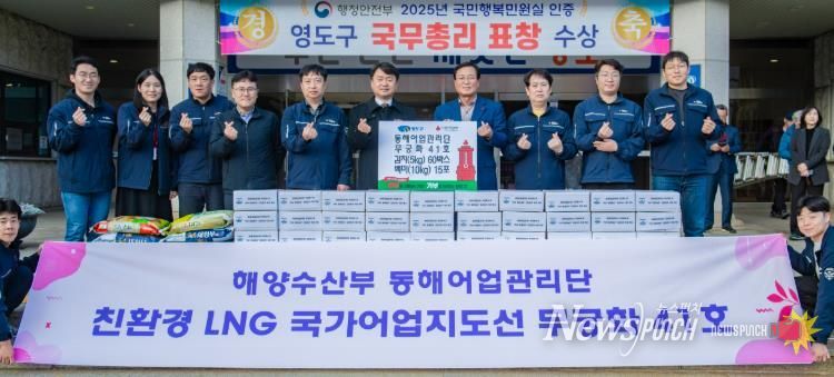 뉴스펀치 김길룡 기자 | 해양수산부 동해어업관리단은 지난 12월 19일 영도구청을 방문하여 ‘희망2026 나눔캠페인’의 일환으로 영양제김치 5kg 60박스와 쌀 10kg 15포(환가액 262만 원 상당)를 기탁했다.