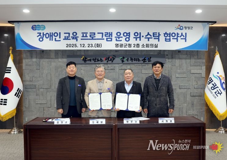 뉴스펀치 김길룡 기자 | 영광군은 12월 23일 영광군청 2층 소회의실에서 (사)전라남도지체장애인협회 영광군지회와 장애인 교육프로그램 운영에 관한 업무 협약을 체결했다.