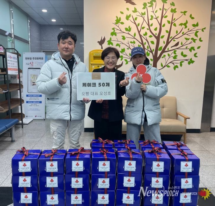 뉴스펀치 김길룡 기자 | 영주시 오빵 베이커리(대표 오성호)가 지난 23일 케이크 50개를 기탁하며 ‘희망2026 나눔캠페인’에 동참했다.