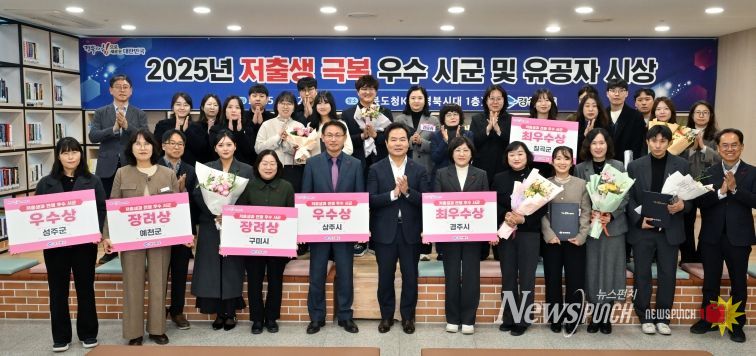 뉴스펀치 김길룡 기자 | 경상북도는 23일 도청 경북시대 K창에서 ‘2025년 저출생 극복 우수 시군 및 유공자 시상식’을 열고, 저출생 대응에 성과를 낸 6개 시군과 10명의 유공자를 시상했다.