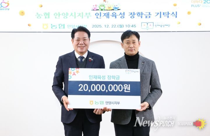 뉴스펀치 김길룡 기자 | 안양시 인재육성재단이 지난 22일 농협 안양시지부로부터 인재육성을 위한 장학금 2천만 원을 기탁받았다고 23일 밝혔다.