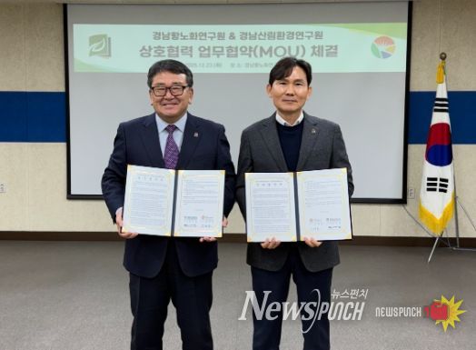 뉴스펀치 김길룡 기자 | 경상남도는 23일 오후 2시 (재)경남항노화연구원에서 (재)경남항노화연구원과 산림생명자원의 이용 및 산업 활성화를 위해 업무협약을 체결했다고 밝혔다.