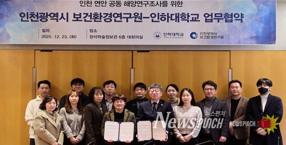 뉴스펀치 김길룡 기자 | 인천광역시 보건환경연구원은 인하대학교와 12월 23일 ‘인천해역 해양환경 공동조사 및 연구협력 업무협약(MOU)’을 체결했다고 밝혔다.