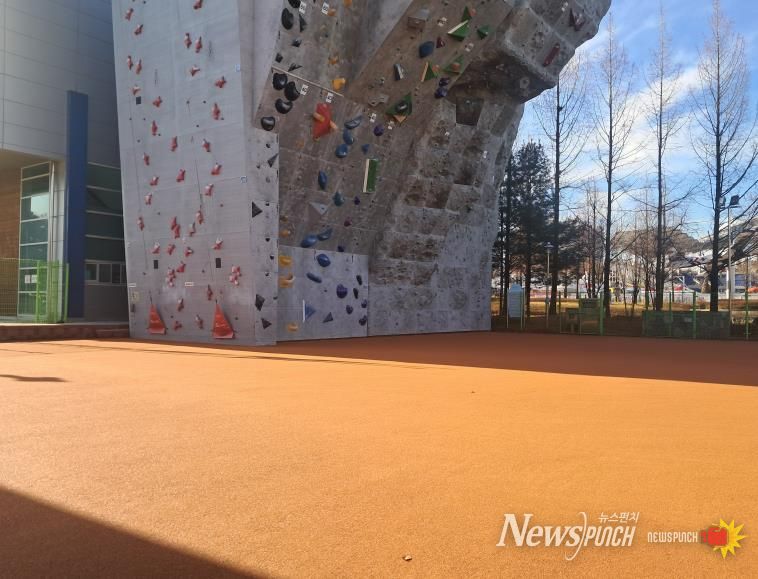 시는 사업비 1억 5천만 원을 들여 종합운동장 내 엘리트체육관 1층 인공암벽장 바닥 687㎡에 충격 흡수 성능이 우수한 탄성포장재를 설치했다. 공사는 지난 7월부터 12월까지 진행됐다.