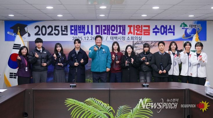 뉴스펀치 김길룡 기자 | 태백시 지난 26일 시청 소회의실에서 2025년 태백시 미래인재 신규 선발자와 그 가족 등이 참석한 가운데 미래인재 지원금 및 인증패 수여식을 개최했다.