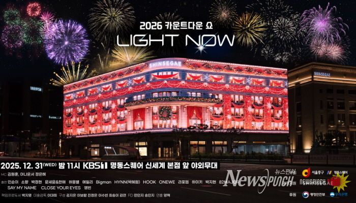 뉴스펀치 김완규 기자 | 서울 중구는 오는 12월 31일 밤 11시, 명동스퀘어 일대에서 열리는〈2026 카운트다운 쇼 LIGHT NOW〉를 'KBS1TV'와 'KBS 유튜브' 채널을 통해 전 세계에 생중계한다고 밝혔다. 행사 현장에 방문하지 못하더라도 TV와 모바일을 통해 편안하게 새해의 감동을 함께할 수 있다.