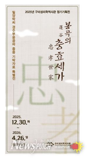 뉴스펀치 김길룡 기자 | 구미성리학역사관은 12월 30일부터 2026년 4월 26일까지 밀양박씨 경주부윤공파 기탁자료 특별전 『봉곡의 충효세가』를 개최한다.