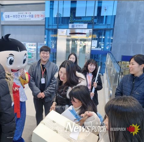 뉴스펀치 김길룡 기자 | 삼척관광문화재단과 삼척시는 동해선 개통 1주년과 KTX-이음 삼척역 첫 열차 운행을 기념해 삼척을 방문한 철도 이용객을 대상으로 환영행사와 다양한 이벤트를 공동으로 진행했다고 밝혔다.