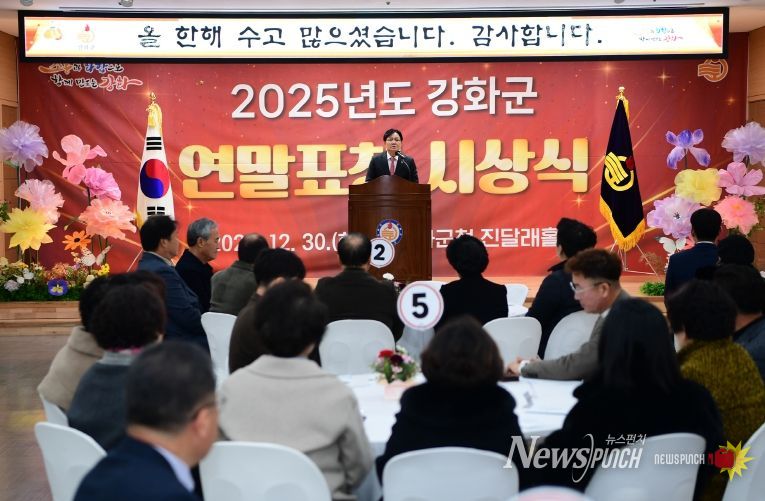 뉴스펀치 김길룡 기자 | 강화군은 30일 한 해 군정 발전에 기여한 민간 유공자와 공무원 유공자를 위한 ‘2025년도 연말 표창 수여식’을 개최했다.