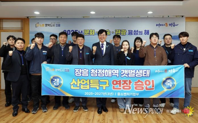 뉴스펀치 김길룡 기자 | 장흥군은 중소벤처기업부 승인을 통해 ‘장흥 청정해역 갯벌 생태 산업 특구 지정’기간이 2027년까지 연장됐다고 밝혔다.