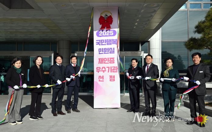 뉴스펀치 김길룡 기자 | 밀양시는 30일 시청 중앙현관에서 시와 시의회 관계자들이 참석한 가운데 2025년 국민행복민원실 재인증 현판식을 개최했다.