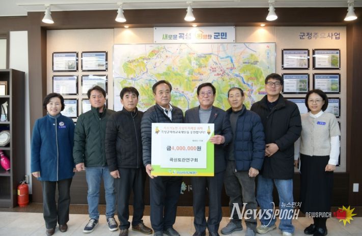 뉴스펀치 김길룡 기자 | 전남 곡성군은 지난 2월에 이어 12월 26일 두 차례에 걸쳐 관내 소재한 곡성 토란연구회 회원들이 곡성군 청소년 교육을 위한 기부를 통해 선행을 이어갔다고 30일 전했다.