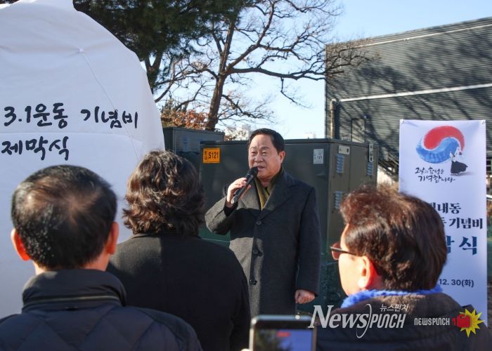 뉴스펀치 김길룡 기자 | 남양주시는 2025년 12월 30일, 평내동 647-1번지 공원 내에서 ‘평내동 3·1운동 기념비 제막식’을 개최했다.