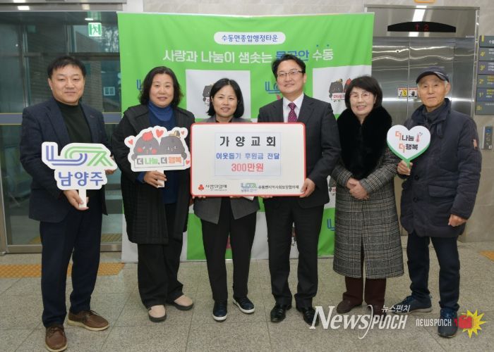 뉴스펀치 김길룡 기자 | 남양주시는 29일 수동면 소재 가양교회에서 지역 내 어려운 이웃을 위한 후원금 300만 원을 경기사회복지공동모금회를 통해 수동면 지역사회보장협의체에 지정 기탁했다고 밝혔다.