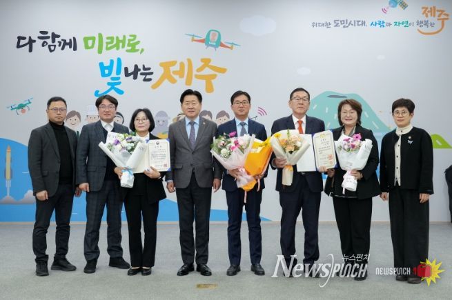 뉴스펀치 김길룡 기자 | 제주특별자치도는 30일 오후 도청 탐라홀에서 ‘2025년 하반기 정기유공자 표창 수여식’을 열고 국가 사회 발전과 지역 공동체 활성화에 헌신한 유공자들에게 감사의 뜻을 전했다.