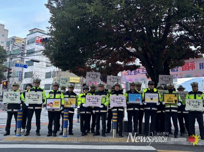 이번 캠페인은 연말연시를 맞아 교통사고 예방과 온기나눔 문화 확산을 위해 마련된 것으로, 총 18명이 참여해 교통법규 준수와 보행자 보호, 온기나눔 실천 등을 알리는 홍보 피켓을 활용해 시민들에게 교통안전 메시지를 전달했다.