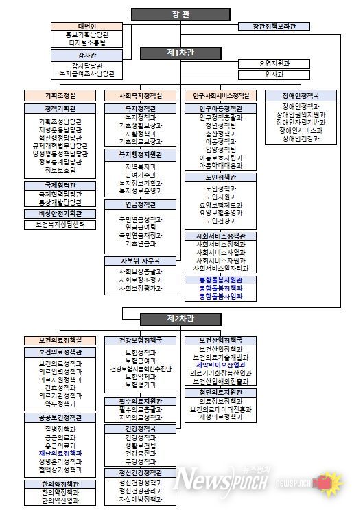 뉴스펀치 김길룡 기자 | 보건복지부는 ‘기본이 튼튼한 복지강국, 국민 모두가 행복한 대한민국’이라는 국정 목표를 실현하고 국정과제를 충실히 뒷받침하기 위해 2025년 12월 30일 자로 조직을 확대·개편한다고 밝혔다.