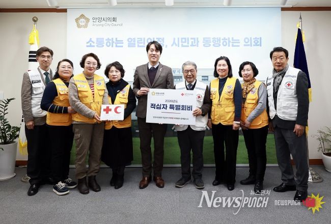 뉴스펀치 김길룡 기자 | 안양시의회는 12월 30일 안양시의회 의장실에서 2026년 적십자 특별회비를 대한적십자사 경기도지사에 전달했다.