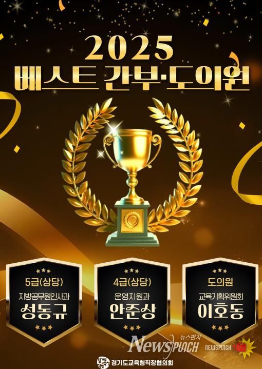 뉴스펀치 김길룡 기자 | 경기도교육청 직장협의회는 소통과 협력을 기반으로 한 조직문화 정착과 활기찬 직장 분위기 조성을 위해 '2025년 베스트 간부 및 경기도의원'을 선정했다고 12월 30일 밝혔다.