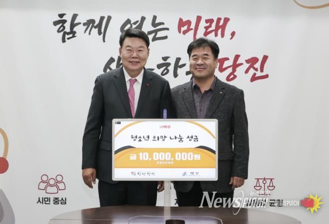 뉴스펀치 김길룡 기자 | ㈜벽우는 지난 30일 오후 당진시청 7층 접견실에서 지역 내 어려운 이웃을 돕기 위한 성금 1000만 원을 당진시에 기탁했다.
