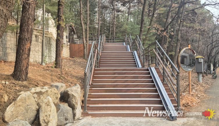 구는 기존 계단을 철거한 뒤 폭 3m, 길이 28m의 계단을 설치했다. 계단에 안전 손잡이와 자전거 경사로 등 시설도 새로 만들었다.