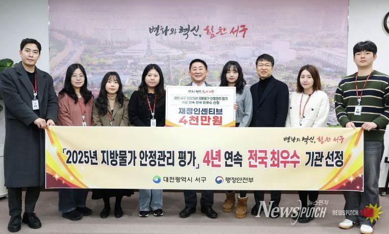 뉴스펀치 김길룡 기자 | 대전 서구는 행정안전부가 주관한 ‘2025년 지방 물가 안정 관리 평가’에서 최우수’ 기관으로 선정됐다고 31일 전했다.