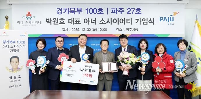 이날 가입식에는 김경일 파주시장을 비롯해 권인욱 경기사회복지공동모금회 회장과 관계자들이 참석했고, 지역 대표로 정해면 ‘아너 소사이어티’회원이 참석했다.