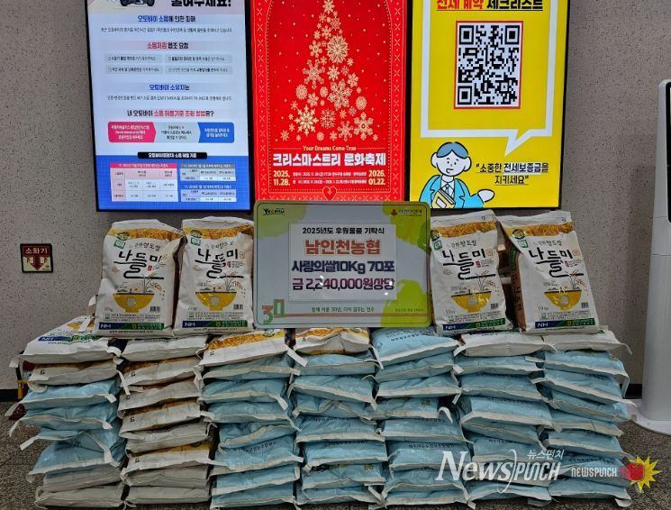 이에 앞서 지난 29일에는 남인천농협(조합장 이태선)이 겨울철 추위와 경제적 어려움으로 이중고를 겪고 있는 소외된 이웃을 돕고, 지역사회 나눔 문화를 확산하기 위해 ‘사랑의 쌀’ 70포(700kg)를 기탁했다.
