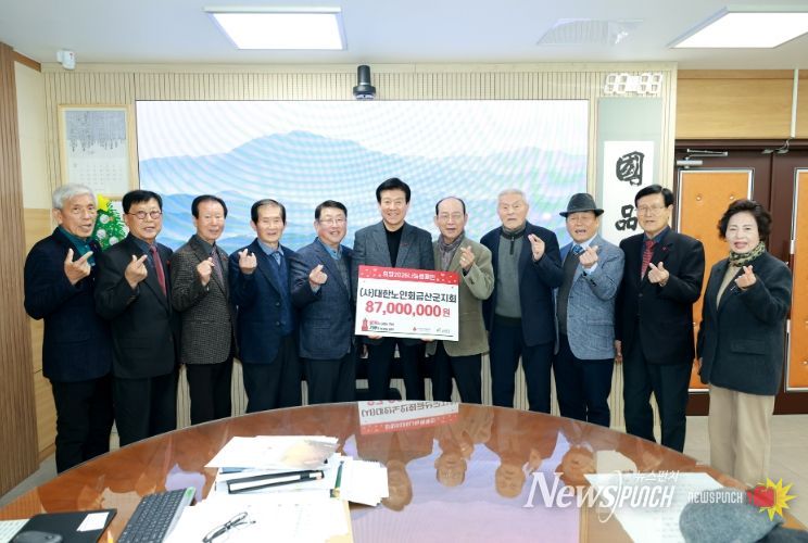 뉴스펀치 김길룡 기자 | (사)대한노인회금산군지회(지회장 양희성)는 지난 30일 금산관내 인구증가 지원사업에 소중히 쓰이길 바란다며 성금 87,000,000원을 기탁했다.