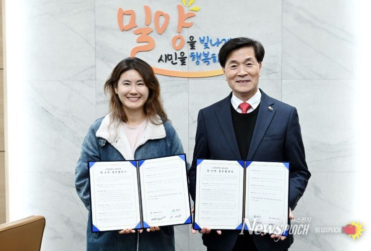 뉴스펀치 김길룡 기자 | 밀양시는 지난 30일 시장실에서 비베카요가(대표 비베카 킴)와 요가컬처타운 관리·운영을 위한 위·수탁 협약을 체결했다.