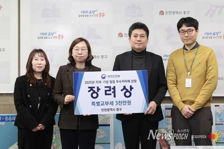 뉴스펀치 김길룡 기자 | 인천시 중구는 ‘호텔객실리사 양성 교육’을 성공적으로 운영하며, 행정안전부 주관 ‘2025년 지역-기업 협업 우수사례 공모’에서 장려상을 받았다고 31일 밝혔다. 이번 수상으로 ‘특별교부세 3천만 원 확보’ 성과도 함께 거뒀다.