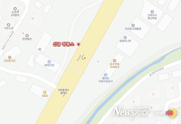 뉴스펀치 김길룡 기자 | 포천시는 선단동 소재 건화주유소 인근에 선단1통 경로당 임시 버스정류소를 설치해 2026년 1월 1일 첫차부터 운영한다.