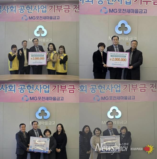 뉴스펀치 김길룡 기자 | 소흘읍행정복지센터는 지난 30일 엠지(MG)포천새마을금고가 소흘읍·포천동·신북면·선단동 지역사회보장협의체에 ‘사랑의 좀도리’ 성금 각 200만 원씩, 총 800만 원을 기탁했다고 전했다.