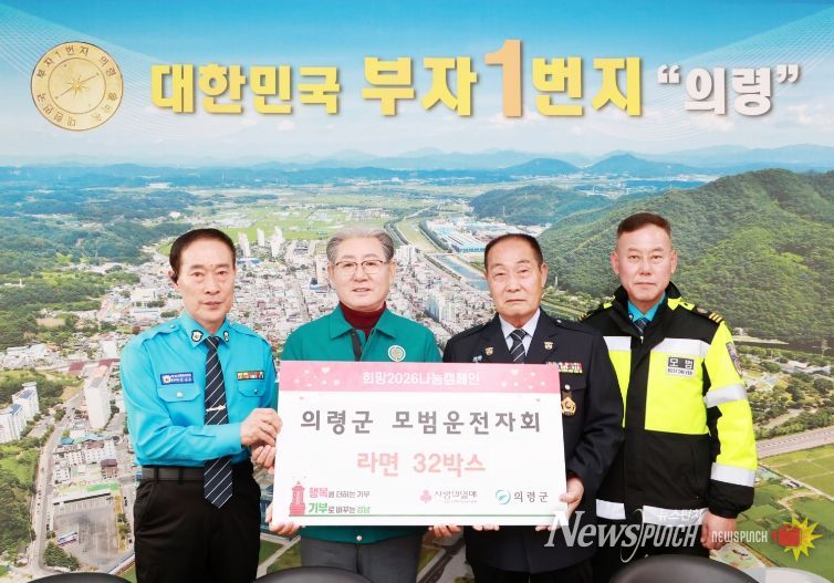 뉴스펀치 김길룡 기자 | 의령군은 지난 30일, 연말 이웃돕기를 위해 의령군 모범운전자회가 라면 32박스(100만 원 상당)를 기탁했다고 밝혔다.