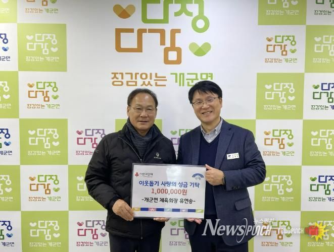 개군면 체육회 유연송 회장은 지역 내 어려운 이웃을 돕기 위해 성금 100만 원을 기부하며 개군면의 새해 첫 기부자로 나눔에 동참했다. 이번 성금은 지역 내 취약계층을 위한 복지 지원에 사용될 예정이다.