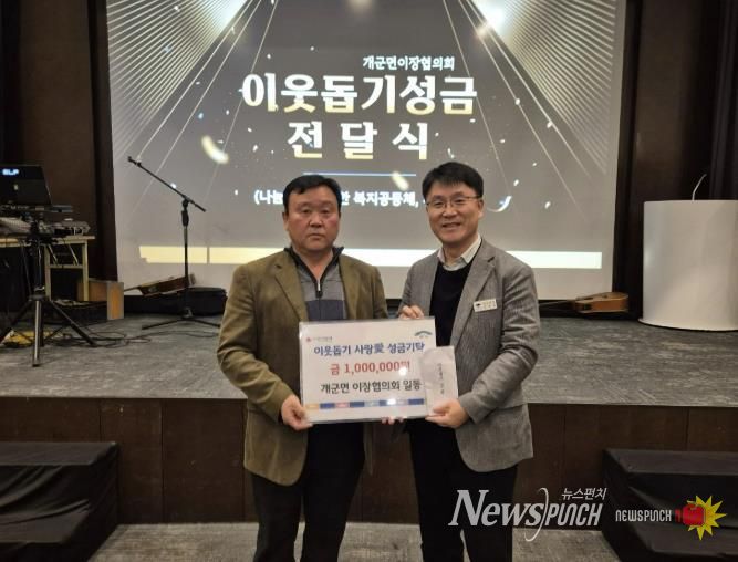 임병희 개군면장은 “항상 지역을 위해 앞장서 주시는 이장협의회에 깊이 감사드린다”며 “기탁된 성금은 꼭 필요한 분들께 소중히 전달하겠다”고 말했다.