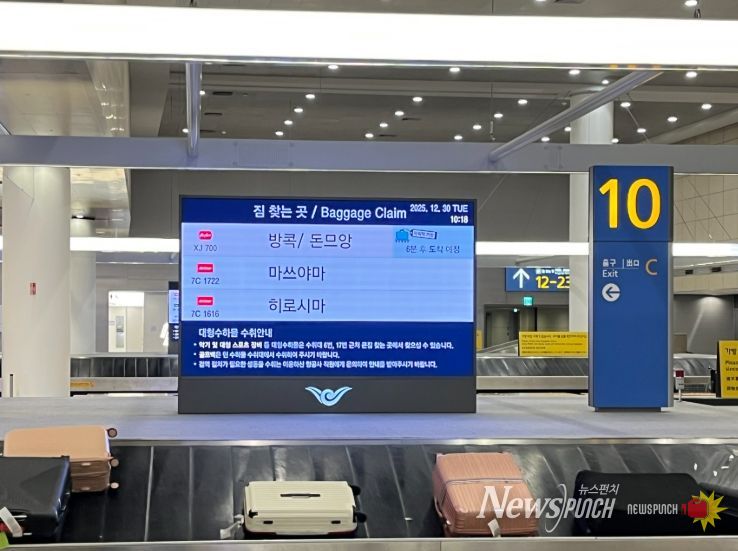 뉴스펀치 김길룡 기자 | 인천공항에 도착 수하물의 예상 수취시간을 빅데이터로 실시간 알려주는 안내 서비스가 도입된다.