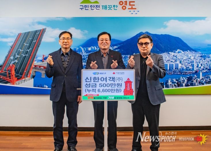 뉴스펀치 김길룡 기자 | 부산 영도구 소재 신한여객자동차㈜(대표 성민호)는 지난 12월 30일 영도구청을 방문해 성금 500만 원을 기탁했다.