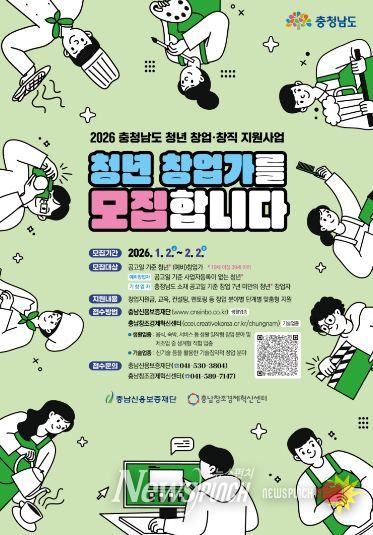 뉴스펀치 강영선 기자 | 충남도는 창업을 계획하고 있는 청년들을 위해 창업 전반에 도움을 주는 ‘2026년 충남 청년 창업·창직 지원사업’ 참여자를 모집한다.