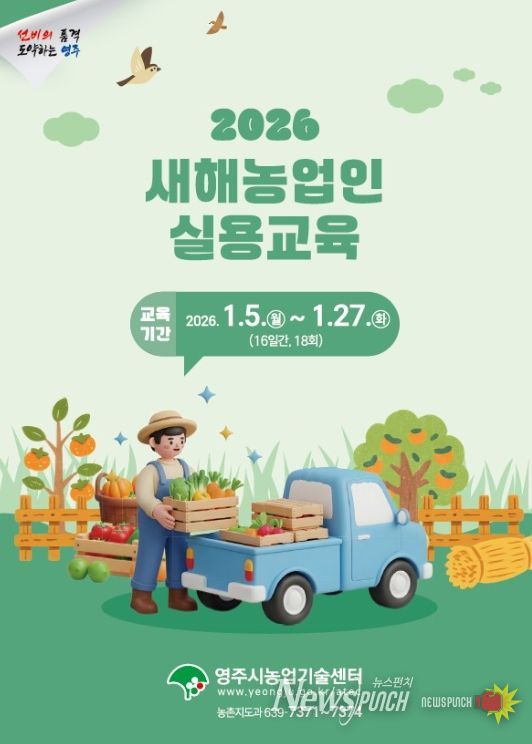 뉴스펀치 김길룡 기자 | 영주시는 오는 1월 5일부터 27일까지 이상기상에 대응하고 경쟁력 있는 농업 기반을 마련하기 위해 ‘2026년 새해농업인 실용교육’을 실시한다.