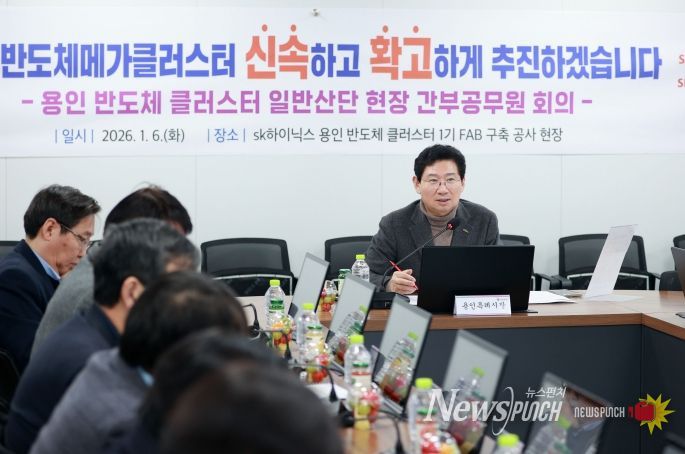 뉴스펀치 박상훈 기자 | 용인특례시는 6일 SK하이닉스의 첫 번째 팹(Fab) 건설공사가 진행 중인 처인구 원삼면 용인 반도체 클러스터 일반산업단지 현장을 방문해 2026년 첫 현장 간부공무원 회의를 진행했다.