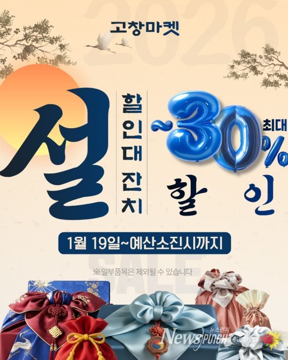 뉴스펀치 최영남 기자 | 고창군 공식 온라인 쇼핑몰 ‘고창마켓’이 설 명절을 맞아 오는 19일부터 31일까지(18일간) ‘설 맞이 온라인 할인 프로모션’을 진행한다고 15일 밝혔다.