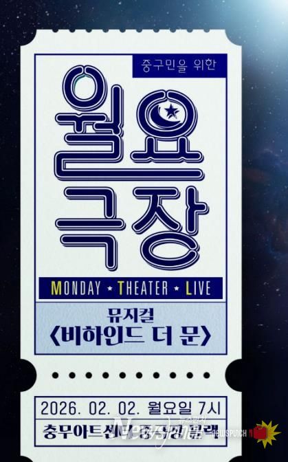 뉴스펀치 박상훈 기자 | (재)중구문화재단은 서울 중구민을 위한 특별 공연 프로그램인 ‘월요극장’의 2026년 첫 작품으로 뮤지컬 〈비하인드 더 문〉 특별 공연을 선보인다. 2월 2일 오후 7시 충무아트센터 중극장 블랙에서 진행되며, 오는 1월 19일 14시부터 충무아트센터 홈페이지에서 예매가 가능하다.