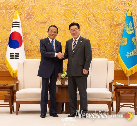 뉴스펀치 김용희 기자 | 이재명 대통령은 16일 16시부터 약 30분간 '서울-도쿄 포럼' 참석차 방한한 아소 다로(麻生 太郎) 전 일본 총리를 접견하고, 이번 주 진행된 나라(奈良) 방문(1.13.-14.)과 한일 정상회담 결과 등에 대해 이야기를 나누었다.