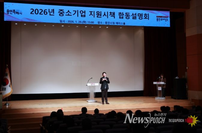 뉴스펀치 박상훈 기자 | 용인특례시는 20일 시청 에이스홀에서 지역 내 중소기업 지원 정책을 설명하는 ‘2026년 중소기업 지원시책 합동설명회’를 열었다.