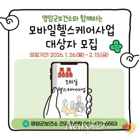 뉴스펀치 박상훈 기자 | 영암군보건소가 1/26~2/13일 ‘2026년 모바일 헬스케어사업’ 참여자 50명을 선착순 모집한다.