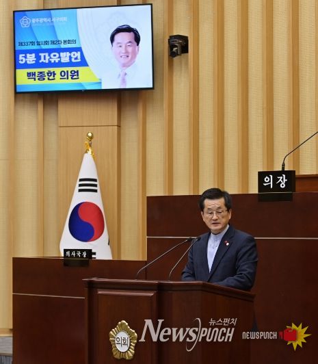 뉴스펀치 최영남 기자 | 광주 서구의회 백종한 의원(화정3동, 화정4동, 풍암동)이 23일 제337회 임시회 제2차 본회의에서 5분자유발언을 통해 재난·안전·민생·복지 현장에서 근무해 온 공직자들의 노고를 치하했다.