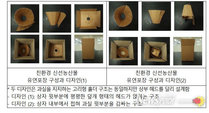 뉴스펀치 정홍균 기자 | 농촌진흥청은 수박 등 대형 과일과 열매채소류의 파손 문제를 해결하기 위해 (주)그랜트와 협력 연구로 친환경 접이식 내․외포장재 디자인을 개발했다.